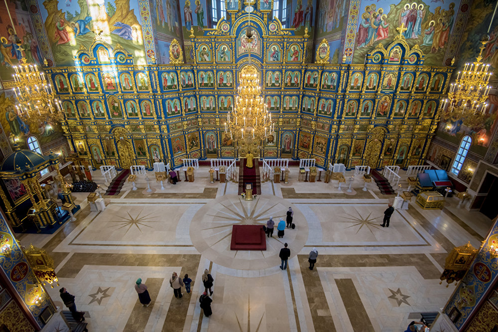 Еліміздегі ең ірі православтық кешен 2009 жылы салынды. Соборда төрт қасиетті жәдігер бар: Москва және бүкіл Ресей патриархы Кирилл сыйлаған әулие Апостол Андрей Первозванныйдың, Киев-Печерский лавр әулиелері мүрделерінің бөлшегі, әулие Александр Свирский мүрдесінің бөлшегі бар икона, Мария Египетскаяның иконасы, «Казанская» құдай ана иконасы. Храмның ішін Ресейдің икона салушыларымен даңқы шыққан Палех поселогының суретшілері безендірген.